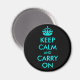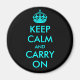 Runder oder quadratischer Magnet, den Sie mit einer Parodie des britischen WII-Kriegsposters "Keep Calm and Carry On" anpassen können.