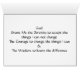 Mit einer schönen Wiedergabe eines friedlichen Watercolor auf der Front und dem Serenitygebet nach innen, ist diese Karte ein willkommenes Geschenk zu den Leuten, in der Erholung oder täglichen Druck gerade in beschäftigen. Geben Sie das Geschenk des Friedens.