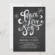 Ruhe, Liebe und Freude Rustikale Chalkboard Holiday Party Einladung Individuelle Feier Einladung mit whimsical Drehbuch von "PEACE, LIEBE AND JOY" und ein Chalkboard Hintergrund.