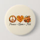 Mit diesem "Peace, Liebe, Fall"-Knopf mit einem charmanten Herbstblattfeuer, einem Kürbisherz und festlichen Kürbissen lassen Sie die Schönheit des Herbstes erleben. Dieses gemütliche und saisonale Design ist perfekt für Herbstfreunde, Kürbisgewürzfans und Herbstbegeisterte. Ideal, um eine warme und rustikale Touch zu Ihrer Herbstkollektion hinzuzufügen.