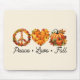 Mit diesem Mousepad "Peace, Liebe, Fall" mit einem bezaubernden Kranz aus Herbstblättern, einem Kürbisherz und festlichen Kürbissen lassen Sie sich vom Herbst verzaubern. Dieses gemütliche und saisonale Design ist perfekt für Herbstfreunde, Kürbisgewürzfans und Herbstbegeisterte. Ideal, um eine warme und rustikale Touch zu Ihrer Herbstkollektion hinzuzufügen.
