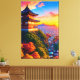 Ein japanischer Tempel auf einem Hügel, der bei Sonnenuntergang einen malerischen Blick auf die Stadt und die Berge bietet.