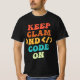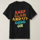 Mit unserem Retro-inspiriert "Behalt Calm and Code On" Wavy T - Shirt Design kommen Sie in den Coding Groove! Dieses trendige Tee verbindet Vintage Vibes mit einer technisch versierten Drehung und ist somit die ideale Wahl für Programmierer, Entwickler und Programmierer gleichermaßen. Dieser T - Shirt mit einer welligen psychedelischen Kulisse, die an die Ästhetik des 80ers erinnert, fügt Ihren Programmiersitzungen eine Touch Nostalgie hinzu. Der ikonische Slogan "Behalt Calm and Code On" dient als Mantra für den bleibe von fokussierter und widerstandsfähiger gegenüber Programmieraufgaben und macht ihn zu einem bestärkenden und motivierenden Design. Dieser T - Shirt aus hochwertigem Stoff bietet Stil und Komfort und sorgt dafür, dass Sie Ihre Programmierprojekte einfach und sicher angehen können. Egal ob Sie bis spät in die Nacht programmieren oder technische Treffen besuchen, dieses Tee ist ein cooles und lässiges Statement, das Ihre Leidenschaft für Programmierung widerspiegelt.