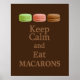 Poster mit Limonen, Erdbeeren- und Schokoladenmakaronen, die die klassische Botschaft "behalt ruhig" begleiten - Ein tolles Geschenk für Liebhaber von feinem französischem Gebäck