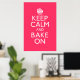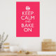 "Behalt Ruhe und Bake On" Poster. Sie können die Farbe des HINTERGRUND anpassen, indem Sie auf den orangefarbenen Knopf "IT KONZERTIEREN" klicken und die Farbe auf "BEARBEITEN - Hintergrund ändern" ändern