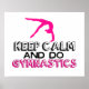 Gymnastikplakat "Behalt Calm and Do Gymnastik"... der Text ist in schwarz und rosa und hat eine Silhouette Gymnastik. ©gollygirls.com