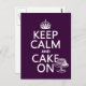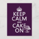 Das Behalte Calm und Cake On, im Stil des klassischen behalten Posters. Neben den Worten steht ein wunderbarer Kuchen. Es ist ein schönes Design und eine wunderbare Stimmung. Lass uns allen Kuchen an. Liebliche Geschenke für alle, die Lieben zu backen.