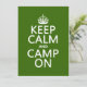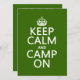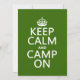 Dieser liest Behalt Calm und Camp On, im Stil des klassischen behalten ruhigen Poster. Es ist ein schlichtes, sauberes Design, behaltend die traditionelle Krone oben. Es macht eine wunderbare Auswahl an Produkten für jeden, der Lieben zu Camp, oder wie danke zu Ihrem Campingplatz am Ende der Saison.