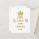 Dieses Design bietet eine goldene "3-D"-Krone über den Worten "Behalt Ruhe und Choose Life ". Fühlen Sie sich frei, um dieses Element durch Zazzle's großartige Anpassungs-Tools Ihre eigenen Worte/Bilder/Hintergrundfarbe hinzuzufügen!