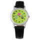 Uhr, Klassische Damenuhr mit schwarzen Lederarmband