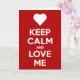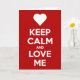 Es ist die sehr niedliche, klassische Grußkarte "Behalt Calm And Liebe Me". Mit einem Herz über den Worten ist diese Karte die perfekte Einmalkarte für ihn oder sie am Valentinstag... Nimm dir heute!