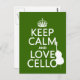 Dieser liest Behalt Calm und Liebe Cello, im Stil des klassischen behalten ruhigen Poster. Die Silhouette eines Cello Erholungen gegen die Worte. Es ist ein schönes, einfaches Design, perfekt für jeden, der das Cello Lieben.