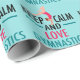 Funny Behielt Ruhe und Liebe Gymnastik Geschenk in schönem aquamarin. Ein niedlicher Gymnast-Spaß für einen Gymnastiktrainer oder ein Mädchen, die Lieben in einem hübsch rosa Leotard stolpern.