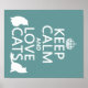 Dies ist das klassische Kriegsposter "Keep Calm and Carry On", umformuliert in "Behalt Calm and Liebe Cats". Es ist weiß auf farbigem Hintergrund geschrieben und wird von Silhouetten von Katzen begleitet, die in der Nähe der Wörter sitzen. Sie sind auf einer breiten Produktpalette erhältlich, einschließlich Notizblöcken, Aufklebern, Tasten, Buchtaschen und T - Shirt. Sie machen großartige Geschenke/Geschenke/Leckereien für Katzenliebhaber und Besitzer, oder Dankeschön an Tierärzte und Cattery Besitzer. Alle Hintergrundfarben sind einfach an Ihre eigenen Vorlieben angepasst.