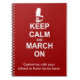Dieses Design ist ein neues Spin auf dem berühmten britischen Poster, das den berühmten Satz "Behalt Calm and..." enthält, aber mit "März On" endet. Der Ringband-Verweis wird durch eine grafische Darstellung eines Shakos - der ikonischen Kopfbekleidung der marching arts - weiter ergänzt. Sie können dieses einzigartige Notebook auch mit Ihrer eigenen Nachricht personalisieren, indem Sie die einfach bereitgestellte Vorlage verwenden.