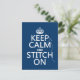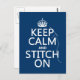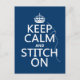 Dieser liest sich Behaltend Calm und Stitch On, im Stil des klassischen behalten ruhigen Poster. Es gibt eine Nadel, die die Buchstaben durchbohrt, mit einem Faden. Es ist ein schönes, einfaches und auffälliges Design, das eine lustige Auswahl von Produkten, die von allen, die Lieben zu nähen beliebt machen wird.