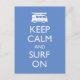 Behalt Ruhe und surfe auf, mit einer Ikone eines Van mit Surfbrett oben