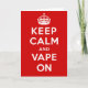 Eine lustige Interpretation des berühmten "Behalt ruhig und mach weiter" Anstrengungspakets des Zweiten Weltkriegs. Der Slogan ist Behalten Calm und Vape On und die Farbe ist rot. Vape on und inspiriert werden, ecig Liebhaber!