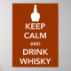 Behalt Ruhe und Drink Whisky Poster in ganz Weiß mit braunem Hintergrund.