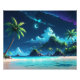 Dieses faszinierende Gemälde spiegelt die Ruhe eines tropischen Strandes wider, der im sanften Glühen eines Halbmondes badet. Am Ufer ragen sanfte Wellen an, Palmen schlängeln sich anmutig in der Brise und eine Decke von Sternen funkelt in der weiten Weite des Nachthimmels. Dieses Kunstwerk lädt zum Entspannen, Entspannen und Genießen ein.