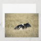 Eine schwarz-weiße Kuh auf dem gelben Gras