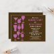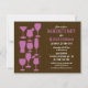 Feiern Sie die zukünftige Braut im Stil. Eine Auswahl an Cocktails, Bier und Weingläsern in lila Silhouette, mit einem braunen Hintergrund, gestreift mit Säulen aus weißen Punkten, um einen regnerischen Effekt zu erzielen. Ihr individueller Text fällt mit anderen optionalen Informationen, die auf der Rückseite gedruckt werden, lila und weiß auf. Erhältlich in alternativen Farben.