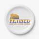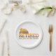 In Rente. Ein Design, das besagt, dass Rentner Sie am Strand sehen. Dieses Design wirkt auf diese Paper-Teller sehr effektiv