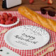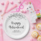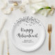 Teller mit Schwarz und Silber-Thema mit einem silbernen Glitzer Konfetti-Rahmen und dem Titel HAPPY RETIREMENT in einem modernen Skript-Schriftart. Personalisieren Sie es mit dem Namen des Rentners, der Anzahl der Dienstjahre und dem Namen oder der persönlichen Nachricht des Unternehmens, der Schule oder der Organisation. Wenden Sie sich an den Designer, wenn Sie dieses Design modifizieren möchten, ein anderes Produkt erwerben möchten oder Gegenstände für Ihr Party-Ensemble koordinieren möchten.