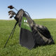 Ruhestand mit Golfball auf grünem Golf Handtuch