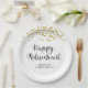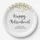 Teller mit Goldrahmen und dem Titel HAPPY RETIREMENT in einem modernen Script-Schriftart zum Thema Schwarz und Gold. Personalisieren Sie es mit dem Namen des Rentners, der Anzahl der Dienstjahre und dem Namen oder der persönlichen Nachricht des Unternehmens, der Schule oder der Organisation. Wenden Sie sich an den Designer, wenn Sie dieses Design modifizieren möchten, ein anderes Produkt erwerben möchten oder Gegenstände für Ihr Party-Ensemble koordinieren möchten.