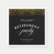 Eine Party-Serviette, die perfekt für jedes Party in der Rente geeignet ist. Das Design bietet ein elegantes Design mit elegantem Drehtext und goldenen Glitzer Confetti auf schwarzem Hintergrund.
