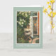 Eine Ruhestands-Glückwunschkarte mit dem Gruß in Waliser und ein Gartensitz im Sonnenschein neben einem wohlriechenden Scheinorangen-Blütenbaum; von einer ursprünglichen weichen Pastellmalerei von Judy Adamson.
