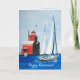 Watercolorgrafik eines Segelboots, das den Hafen in Holland, Michigan für Ruhestand verlässt