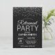 Ruhestands-Party-schwarzer und silberner Glitzer Einladung