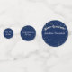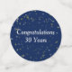 Happy Retirement Text auf einem dunkelblauen Hintergrund mit Sternen. Ändern Sie den Namen in den Namen des glücklichen Rentners auf dem großen Kreis, ändern Sie die Jahre auf dem mittleren Kreis.