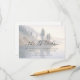 Diese Hochzeitseinlagekarte zeigt eine ruhige Wasserfarbenlandschaft mit sanften Blautönen und Grüntönen, die die Ruhe einer Seelandschaft einfangen. Das Design umfasst stilisierte Kiefern auf sanften Hängen und schafft eine friedliche und natürliche Atmosphäre. Elegante Schrift-Typografie hebt "The Details" hervor, während eine kleinere Serifenschrift zusätzliche Informationen liefert und einen anspruchsvollen Kontrast bietet. Perfekt für die Übermittlung wesentlicher Veranstaltungsdetails, strahlt diese Karte eine ruhige und einladende Stimmung aus, ideal für Hochzeiten oder besondere Anlässe.