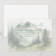 Diese Hochzeitseinlagekarte zeigt ein ruhiges, naturinspiriertes Design mit einer bergigen Landschaft als Mittelpunkt, umgeben von Kiefern. Die Farbpalette umfasst sanfte Grüntöne und gedämpfte Erdtöne, die eine ruhige und friedliche Atmosphäre schaffen. Die Kunsttechnik ähnelt einem handgemalten Aquarelleffekt und verleiht dem minimalistischen und zeitgenössischen Stil eine ätherische Qualität. Elegante Schrift-Typografie hebt "The Details" hervor, während klassischer Serif-Text zusätzliche Informationen liefert und es perfekt macht, um wichtige Ereignisdetails auf eine friedliche und einladende Weise zu vermitteln.