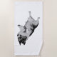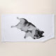 Ein Hund skizzierte das Handtuch in der Mitte, seine entspannte Pose schafft eine fröhliche Stimmung. Es ist eine sanfte Erinnerung, das Leben leicht zu machen und es zum idealen Begleiter für erholsame Tage am Strand zu machen.