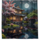 Diese ruhige japanische Landschaft entfaltet sich um einen ruhigen Teich, wo die sanften Wellen die majestätischen Berge in der Ferne widerspiegeln. Die Szene wird von zarten rosa Blüten umrahmt, deren lebhafte Farben sich wunderbar mit den sanften Farbtönen des Wassers kontrastieren. Eine traditionelle Holzbrücke geht sanft über den Teich und lädt zur Besinnung und Harmonie mit der Natur ein. Die Kulisse der mächtigen Berge verleiht dem Ganzen ein Gefühl von Pracht, während die blühenden Kirschbäume eine frische Schönheit verleihen. Diese malerische Umgebung spiegelt das Wesen der Ruhe und die vergängliche Natur des Lebens wider, was eine tiefe Wertschätzung für die Einfachheit der Natur hervorruft.