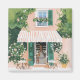 Von einem malerischen Café mit grünen Fensterläden und einem blumengeschmückten Balkon genießen Sie einen Blick auf den belebten Außenbereich. Das Sonnenlicht dringt durch und lädt die Gäste zu einem friedlichen Moment inmitten blühender Vegetation ein.