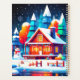 Das subtile Licht der kleinen Lichter rund um das Fenster unterstreicht die gemütliche Atmosphäre des Holzhauses, während der Schneemann fröhlich am Tor steht und Wärme in die Luft atmet und die Freude und das Glück der Saison symbolisiert.