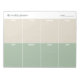Bringen Sie Ruhe und Ordnung auf Ihren Schreibtisch mit diesem sanften, salbeigrünen und cremefarbenen Wochenplaner-Notizblock. Der Titeltext ist anpassbar, sodass Sie Ihre eigene Version erstellen können, z. B. einen Essensplaner, Studienplaner, Fitnessplaner oder einen personalisierten Planer mit Ihrem Namen.