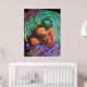 Farbenfrohe Ölpastellfarben eines schlafenden Paares, die von einem spirituellen Vogel des Friedens bewacht und geschützt werden.