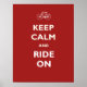 Ein Stück auf dem Vintagen britischen Slogan, Behalten Calm und Ride On, in einem authentischen Schriftart in Weiß, erscheint mit einer Fahrrad-Silhouette für ein lustiges und cooles Design auf authentischem Rot. Suchen Sie nach passenden Shirts, Taschen, Tasse und vielen anderen Behalten Calm Designs in meinem Zazzle-Shop.