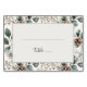 Diese Hochzeitplatzkarte verfügt über ein rustikales und elegantes Design mit einem botanischen Thema, das Blätter und Pinienzapfen in gedämpften, erdigen Tönen in Grün, Braun und Beige zeigt. Das Layout ist sauber und ausgewogen, mit einem zentralen leeren Raum, der von einem komplizierten Muster umrahmt wird, das eine warme, einladende Atmosphäre schafft. Die Typografie enthält eine kursiv geschriebene Schrift für das Wort "Tisch", was dem Gesamterscheinungsbild einen Hauch von Raffinesse verleiht. Perfekt, um eine ruhige und einladende Atmosphäre auf Ihrem besonderen Ereignis zu schaffen.