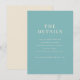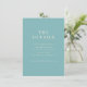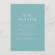 Diese Hochzeitseinlagekarte verfügt über ein minimalistisches Design mit einem beruhigenden Türkis-Hintergrund und eleganter weißer Serif-Typografie. Das Layout ist sauber und zentriert, betont Klarheit und Einfachheit und ist perfekt, um wesentliche Details über Ihren besonderen Tag zu vermitteln. Durch den großzügigen Einsatz von negativem Raum strahlt die Karte ein modernes und professionelles Gefühl aus, ideal, um Gäste auf Ihre Hochzeits-Website zu lenken, um weitere Informationen zu erhalten. Ihr anspruchsvoller Stil macht sie geeignet für formelle Ankündigungen und sorgt dafür, dass Ihre Nachricht sowohl visuell ansprechend als auch leicht lesbar ist.