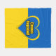 Sherpa Decke mit der Fahne der Ukraine, Herz in den ukrainischen Farben, und Text-Sprichwort "Ruhm zur Ukraine" in Ukrainisch