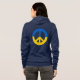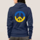 Zip-Hoodie für Frauen mit einem Herz in den Farben der ukrainischen Flagge, Sprichwort "Ruhm zur Ukraine" in der Ukrainischen und ein Friedenssymbol auf der Rückseite