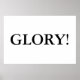 Das Poster ist horizontal und hat in der Mitte schwarz-weiß das Wort "GLORY!".