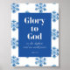 Christliches Weihnachtsposter mit "Ruhm zu Gott in der höchsten, und auf Erden Frieden" (Luke 2:14), mit einem kühnen blauen Schneeflockenmuster dekoriert. Ideal für den Urlaub religiöse Dekoration oder festliche Wandkunst.